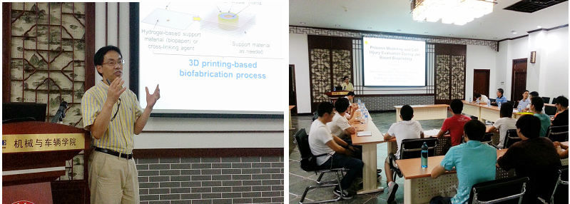 2015年6月29日,應機械與車輛學院制造工程系邀請,美國佛羅里達大學機械與航天工程學院黃勇教授來我校交流訪問,并做了題為“Process Modeling and Cell Injury Evaluation During Jet-based Bioprinting”的研究報告,介紹了細胞打印領域的新成果。制造工程系王西彬教授、馬樹元教授、周天豐教授,以及30余名教師和研究生參加了此次學術報告,并與黃勇教授進行了互動交流。學術報告由王西彬教授主持。