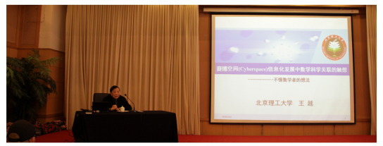 王越以“賽博空間(Cyber Space)信息化發(fā)展中數(shù)學(xué)科學(xué)關(guān)聯(lián)的觸想——不懂?dāng)?shù)學(xué)者的想法”為題目,針對(duì)數(shù)學(xué)是什么、數(shù)學(xué)的一些基本問(wèn)題想法,賽博空間、互聯(lián)互通、“互聯(lián)網(wǎng)+”要義簡(jiǎn)述,結(jié)合賽博空間、“互聯(lián)網(wǎng)+”與應(yīng)用數(shù)學(xué)共同發(fā)展中幾類問(wèn)題的思考進(jìn)行了詳細(xì)的闡述,指出在“賽博空間”概念支持下“互聯(lián)互通”、“互聯(lián)網(wǎng)+”的社會(huì)發(fā)展有眾多科技問(wèn)題有待數(shù)學(xué)科學(xué)的大力創(chuàng)新支持。