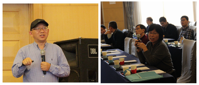 信息科學(xué)分會(huì)場(chǎng)由田玉斌教授和陶然教授主持。分會(huì)開(kāi)始,陶然就“分?jǐn)?shù)傅里葉分析及其應(yīng)用”展開(kāi)了討論。接下來(lái),邢成文以“How to Understand LMMSE Transceiver Design for MIMO Systems From Quadratic Matrix Programming”為題作了報(bào)告,王彥華介紹了“壓縮感知:理論與應(yīng)用”。短暫茶歇后,最后,張世華、李慶娜分別以“基于非負(fù)矩陣分解的數(shù)據(jù)整合方法及其應(yīng)用” 和“Unique decomposition and a new model for ground moving target indication problem”為題目先后完成了報(bào)告。
