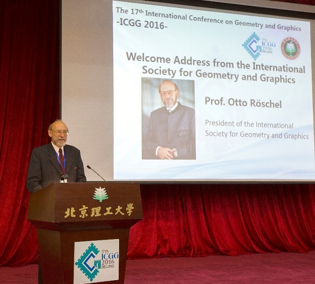 第17屆國際幾何與圖學會議(The 17th International Conference on Geometry and Graphics,ICGG 2016)于2016年8月4日至8日在北京理工大學成功舉行。會議由國際幾何與圖學學會(ISGG)主辦,北京理工大學、中國圖學學會共同承辦。來自美國、德國、俄羅斯、奧地利、日本、意大利、巴西、澳大利亞和中國等28個國家近200名專家學者參加了此次會議。這是我校歷史上承辦的圖學學科領域規模較大和水平較高的一次國際會議。