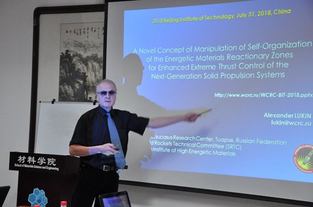 Alexander Lukin教授介紹了固體推進劑在微反應區燃燒機理的研究,和根據該理論提出的可精確控制、重復點火的推進劑系統,并介紹了設想的下一代固體火箭推進劑的特點,展示了Dr. Lukin在該領域的最新進展。