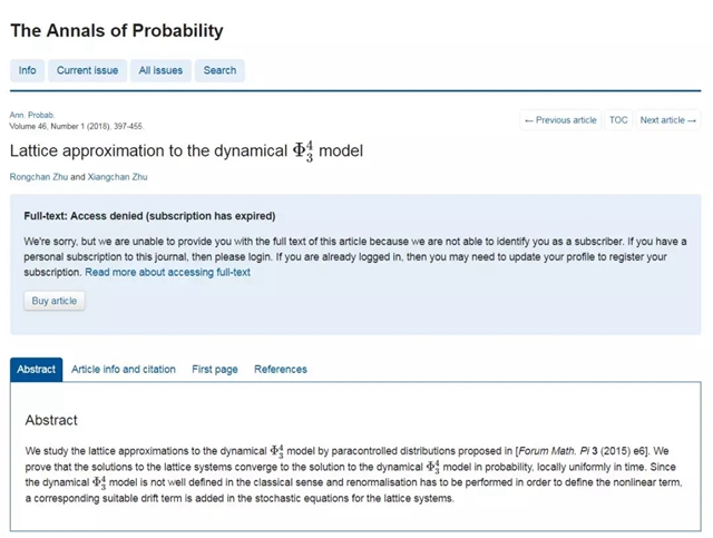 北理工朱蓉禪副教授在《The Annals of Probability》上發表?_3^4動力模型格點逼近的研究成果