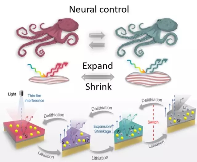 通過模擬章魚皮膚變色機理設計電化學精確調控變色硅膜