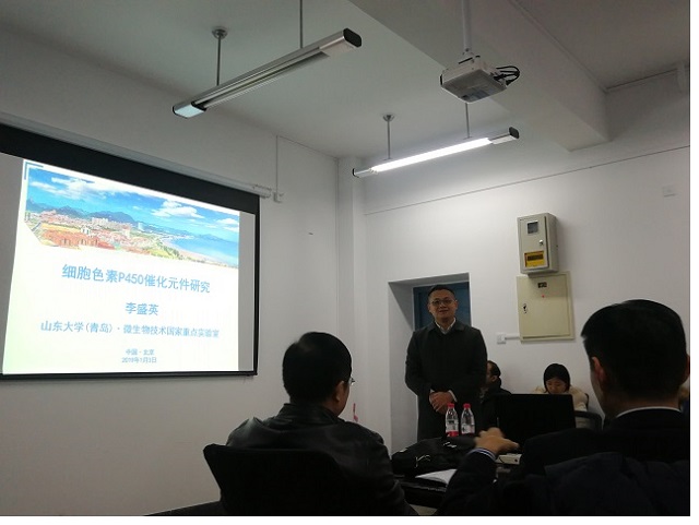 應北京理工大學化學與化工學院邀請,山東大學微生物技術研究院李盛英教授于2019年1月3日下午來到北京理工大學化學與化工學院,為北理工師生帶來題為 “細胞色素P450催化元件研究” 的學術報告。生化工程系的李春教授主持了本次學術報告,化學與化工學院教師及研究生四十余人參加了報告會。