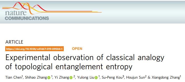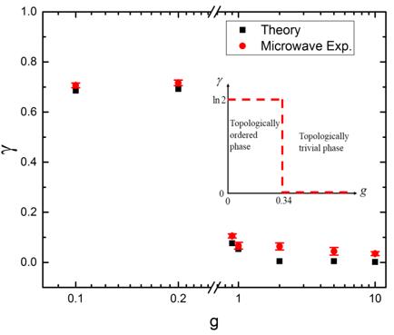 在上述微波信號處理研究的基礎上,進一步開展了拓撲糾纏熵方面的研究。拓撲糾纏熵是由Kitaev和文小剛十幾年前在研究拓撲序糾纏特性時提出的一個物理量。它是能展現出許多新奇物理特性的獨特物態,具有長程糾纏特性是其重要特征之一。雖然理論研究顯示拓撲糾纏熵能很好刻畫拓撲序及其長程糾纏特性,然而一直沒能得到實驗證實。