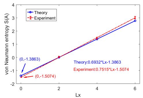 圖3 拓撲糾纏熵實驗和理論結果對比