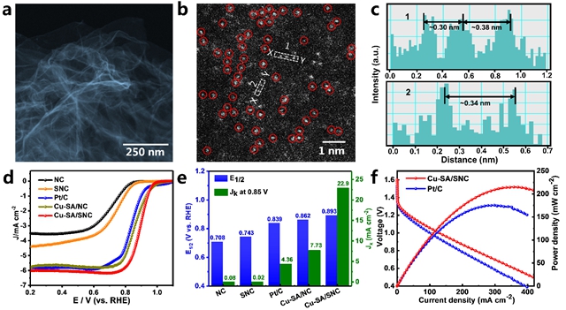 圖1 碳載體上的Cu單原子形貌表征和電催化性能
