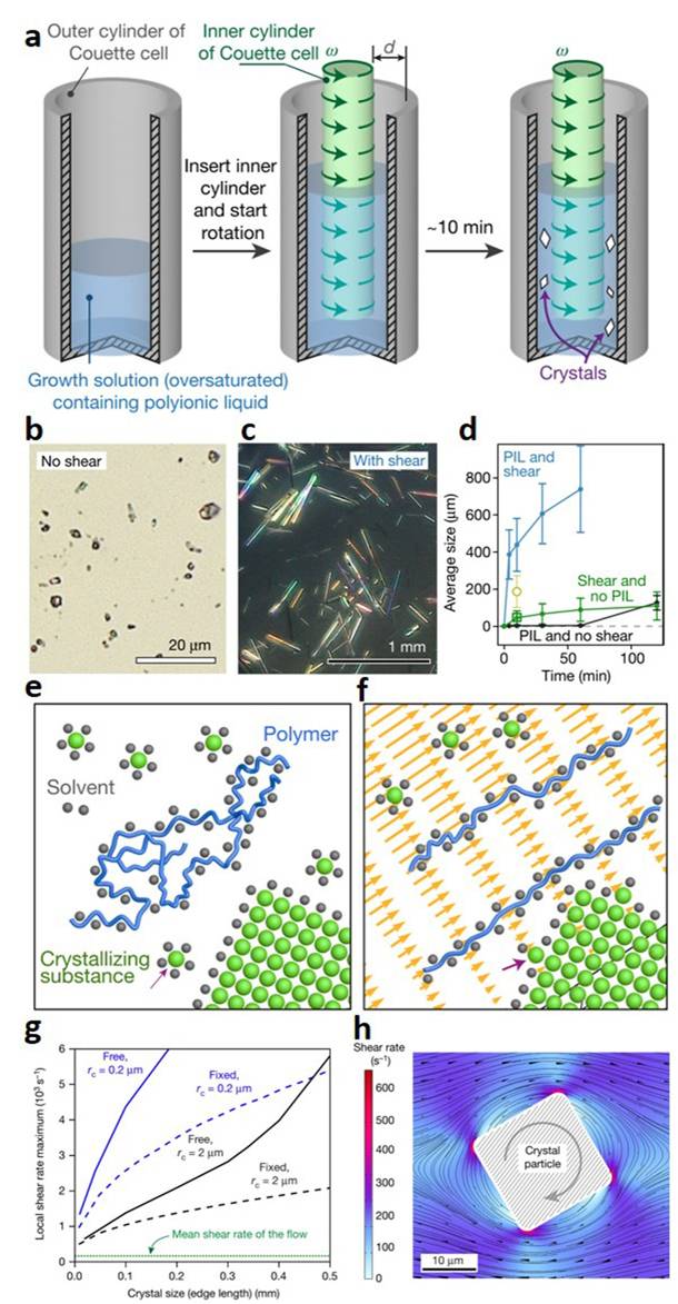 圖:在聚離子液體存在下剪切應力促進均苯三甲酸晶體的生長