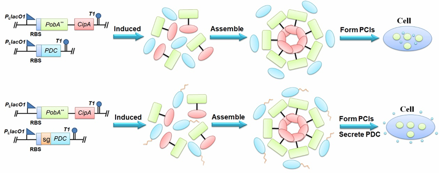 上述綜述是對本團隊近年來利用蛋白自組裝支架在代謝流調控方面的開發及應用的總結和分析,相關工作如下: