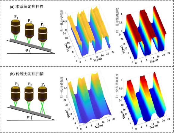現有共焦拉曼/布里淵光譜顯微成像技術由于缺少高精度實時定焦能力,致使掃描過程中聚焦在樣品上的光斑大小隨著樣品的高低起伏而變化,從而制約了共焦光譜顯微系統理論空間分辨力的實現;其次,由于拉曼和布里淵散射光譜強度較弱,成像積分時間較長,共焦光譜顯微系統極易受系統漂移的影響而導致離焦,進而影響空間分辨力和成像質量等;此外,在對生物組織切片樣品進行成像時,垂直入射產生的熒光信號會降低樣品拉曼光譜的信噪比,從而影響拉曼光譜和布里淵光譜探測的準確性,降低檢測精度。