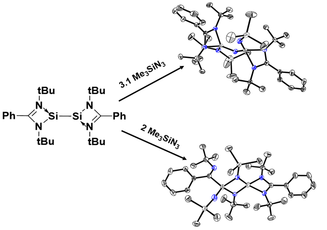 氮卡賓是卡賓的氮類似物,已用于許多有機轉化反應。氮卡賓中不帶電荷的單價氮原子具有高度的反應性,但是至今還沒有被分離出來。氮卡賓是在其母體分子(如疊氮化物或異氰酸酯)的反應過程中通過分別釋放N2或CO原位生成的。而硅卡賓和雙硅卡賓與碳卡賓十分類似,在過去的十年中因其易于合成而引起了人們的極大興趣。近年來,由于LSiCl和LSi-SiL獨特的鍵合性質和反應性,化學家們對其進行了廣泛的研究。