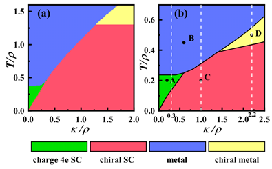 自從1911年荷蘭物理學家昂內斯發現超導的一百多年來,超導現象一直引起經久不衰的關注。1957年,美國物理學家Bardeen、Cooper、Shrieffer提出所謂BCS理論來解釋超導的物理起因,即,電子之間通過交換晶格振動的能量量子(即聲子)來產生有效吸引力,進而形成庫伯配對。一對庫伯對整體上可以看作是玻色子。材料中大量的庫伯對玻色子形成玻色-愛因斯坦凝聚而產生的宏觀量子態就是超導。BCS理論提出之后的半個多世紀以來一直都是超導領域的金科玉律而被廣泛遵循。然而,是否存在超越BCS理論的超導態?特別是,是否存在四個電子形成束縛態玻色子,然后經歷玻色-愛因斯坦凝聚而形成超導,即四倍電荷超導態,的可能性? 2009年,斯坦福大學Steven Kivelson教授團隊提出配對密度波基態在升溫后部分熱熔化而形成四倍電荷超導的理論。之后,麻省理工學院付亮教授團隊和清華大學姚宏教授團隊提出液晶相超導的部分熱熔化可以產生四倍電荷超導。然而,所有這些產生四倍電荷超導相都沒有被實驗觀測到,其原因在于材料實現方面的困難。因而,如何找到容易被材料實現的產生四倍電荷超導的機制一直以來都是該領域關注的焦點。
