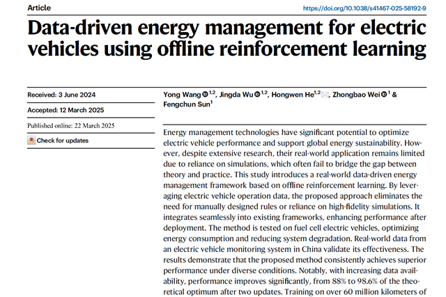 3月22日,北京理工大學機械與車輛學院孫逢春院士與何洪文教授團隊在國際...