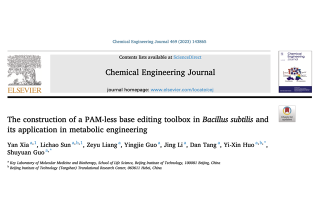 近日,北京理工大學郭淑元教授與霍毅欣教授團隊合作在枯草芽胞桿菌堿基編輯...