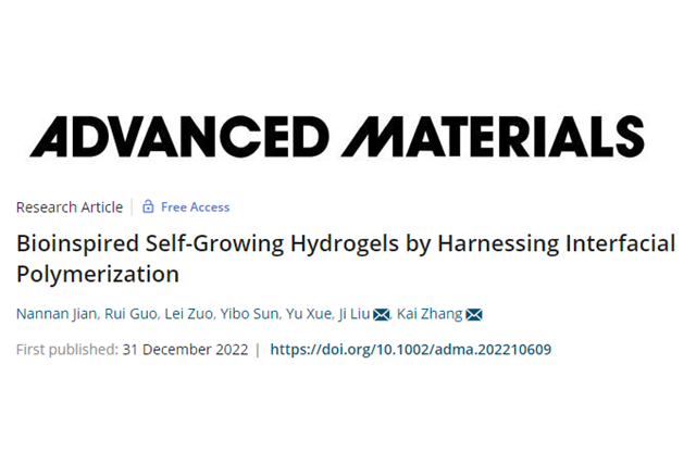 近期,北京理工大學張凱教授團隊在自生長水凝膠方面取得重要進展,相關研究...