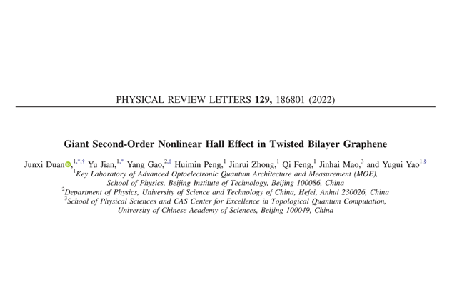 近日,北京理工大學物理學院姚裕貴教授、段俊熙副研究員團隊在轉角石墨烯體...
