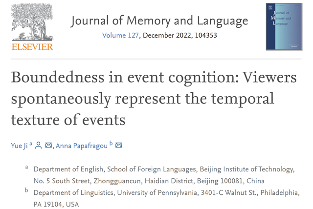 近日,北京理工大學外國語學院助理教授紀悅博士在事件結構的語言與認知方面...