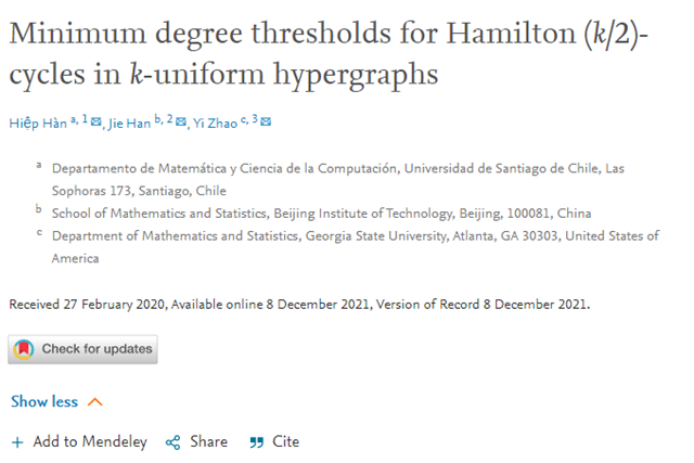 日前,北京理工大學數(shù)學與統(tǒng)計學院韓杰教授在國際圖論與組合數(shù)學頂級學術期...
