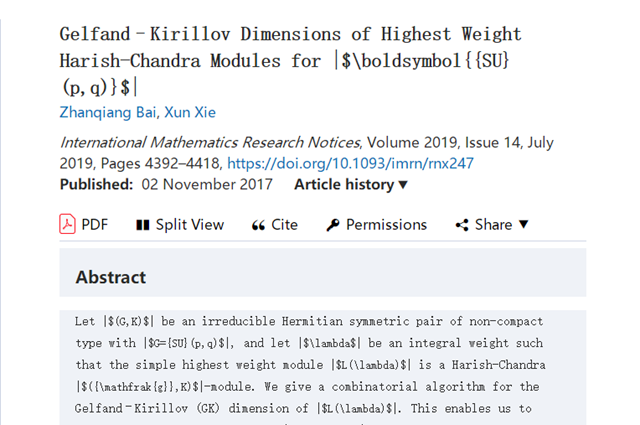 日前,北理工數(shù)學(xué)與統(tǒng)計(jì)學(xué)院謝迅副研究員在國(guó)際數(shù)學(xué)頂級(jí)學(xué)術(shù)期刊《Inte...