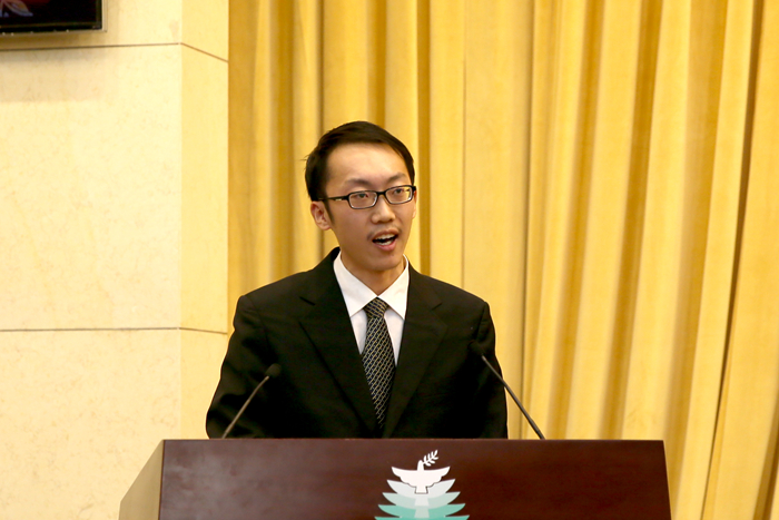 徐特立獎學金獲獎代表自動化學院2011級本科生趙曄代表獎學金獲得者發言。他懷抱著科技報國的夢想,參加多項創新競賽和科研工作。他堅守全面發展的信念,毫不放松對自己學習成績的要求,積極參與學生社團、社會實踐,志愿服務等工作。他將以謙虛的態度面對榮譽,以踏實的作風走向更廣闊的天地。