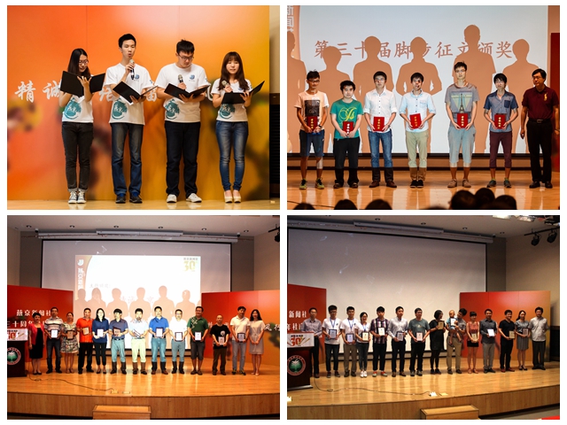活動現場,四名學生為大家深情朗誦《致燕京新聞社》,表達了對作為一名燕京新聞社成員的自豪以及對其未來的美好憧憬。社慶慶典活動中,舉辦了第三十屆“腳步征文”頒獎儀式,藺偉為獲獎學生頒發了證書和獎品。作為社慶活動的一部分,燕京新聞社在七號樓一層大廳舉辦了主題新聞展,圍繞“新聞”的發展與“校園新聞”的發展,展現了北京高校新聞類社團的風雨歷程。