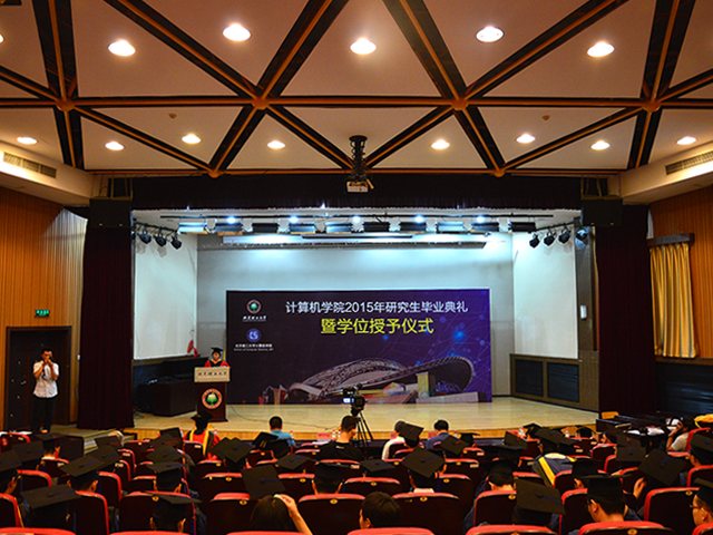在隨后進行的學位授予儀式上,黃河燕院長、牛振東副院長和黃華副院長為畢業生頒發證書并合影留念。在悠揚的旋律聲中,畢業生們從教授手中接過畢業證書,留下了燦爛笑容。計算機學院2015年研究生畢業典禮將成為畢業生們青春時光中最濃墨重彩的一筆。