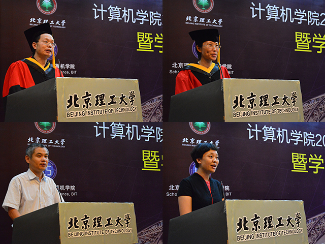 礪石淬金,逐夢前行。2015年6月27日上午,北京理工大學計算機學院2015年研究生畢業典禮暨學位授予儀式在7號樓報告廳隆重舉行。計算機學院院長黃河燕、黨委書記魏名山、副院長牛振東、副院長黃華、副院長鄭軍等學院領導出席典禮,并邀請到計算機學院優秀校友杜昶旭先生、余波先生出席典禮。典禮由學院黨委副書記、副院長趙滿主持。導師代表和畢業生輔導員,2015屆博士畢業生、碩士畢業、留學生畢業生代表,以及部分學生家長參加了此次典禮。