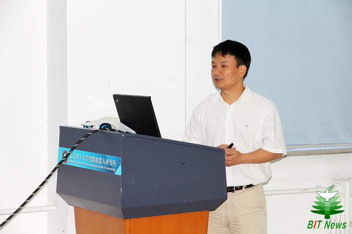 智能機(jī)器人研究所黃強(qiáng)所長從機(jī)器人的發(fā)展態(tài)勢和機(jī)遇、我校機(jī)器人研究的發(fā)展思路和成果、機(jī)器人產(chǎn)業(yè)化的發(fā)展和思考三個(gè)方面進(jìn)行了介紹。