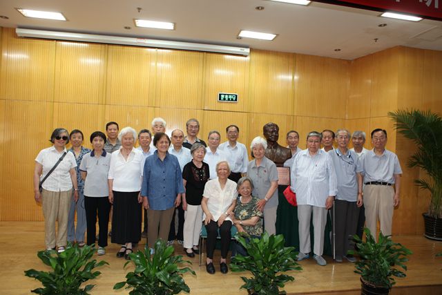 揭幕儀式結束后,機電學院向梁嘉玉女士、孫承緯院士等與會嘉賓贈送了《20世紀中國知名科學家學術成就概覽(力學卷)》一書。與會嘉賓、原8系退休老教師與丁先生銅像合影留念。