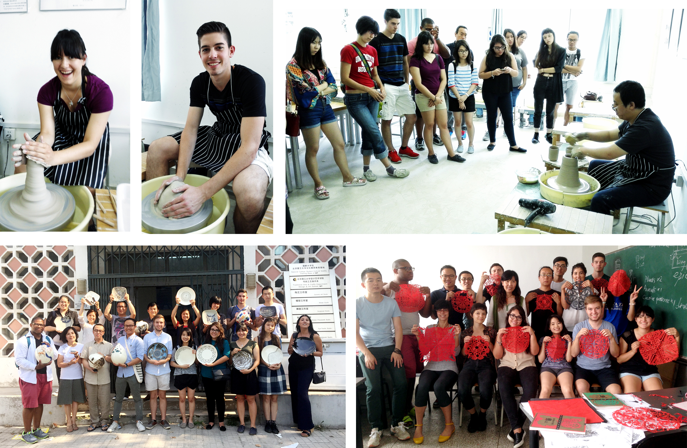 根據雙方教育合作計劃,設計與藝術學院為來訪的休大學生開設了64課時的“中國傳統工藝考察與實踐”課程,課程學分將計入該系學生學分考核系統。6月18日—20日,在傳統工藝美術系王樂耕副教授與趙斌老師指導下休大學生進行了陶瓷創作實踐。課堂學習結束后,休大學生與文化遺產系的同學共同赴邯鄲磁州窯進行了為期3天的考察,并在磁州窯藝術館實習工廠進行陶藝創作。26—28日,在我院聘請的譚芳老師指導下休大學生學習了中國傳統剪紙技法,并赴“中國剪紙第一村”——河北蔚縣南張莊實地考察學習。7月3日,兩院師生共同參加了休大學生課程作品展示匯報會,雙方教師對休大學生的學習成果給予高度評價。