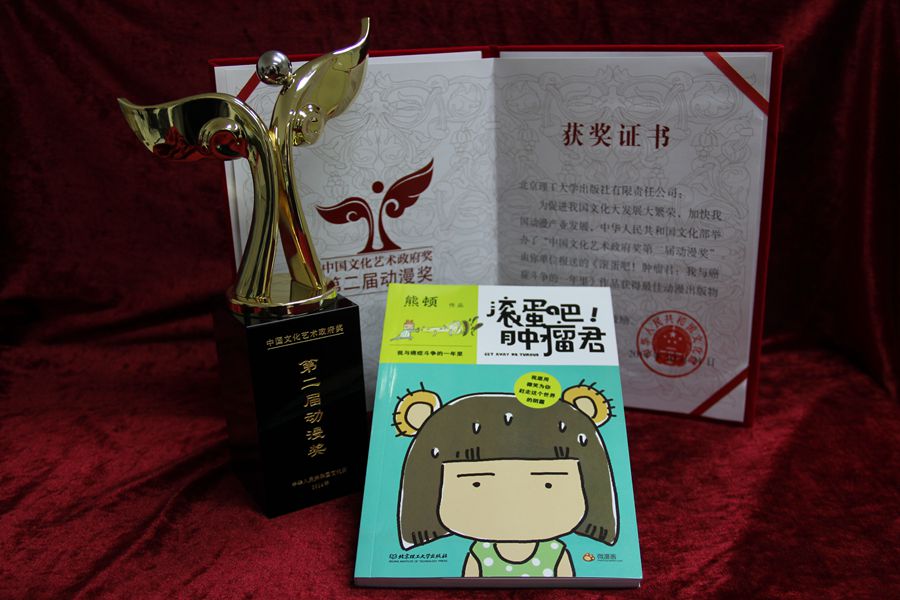 其中《滾蛋吧!腫瘤君》由熊頓本人創作,以熊頓治療的過程和內心感觸為素材,講述了一個癌癥患者笑對生活的感人紀實。在睜眼就是治療室,入耳就是化療、吃藥、體溫、白細胞增減的環境里,她樂觀的記錄了自己的每一段經歷,用畫筆細心捕捉了來自父母、親人、朋友的關懷和生活中的點滴感動。一個風趣幽默的漫畫家,在經歷疾病給她帶來的天翻地覆的變化后,仍舊用作品里難以置信的堅強和幽默風趣的自嘲泰然處之。也能從中獲得積極面對人生挫折的正能量。這部漫畫也是2014年中國文化藝術政府獎動漫類唯一獲獎作品!