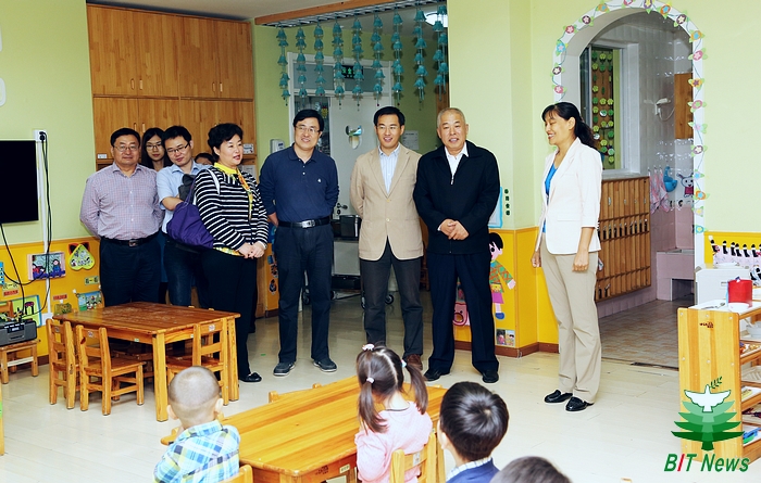 揭牌儀式開始之前與會領導進行親切會談,其間沈園長介紹了辦園理念及團員教師的成長經歷,與會領導對北京理工大學幼教中心取得的成績給予肯定,并對今后的工作提出了更高的要求。