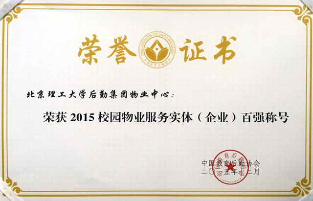 北理工后勤物業榮獲“2015校園物業服務實體(企業)百強”稱號