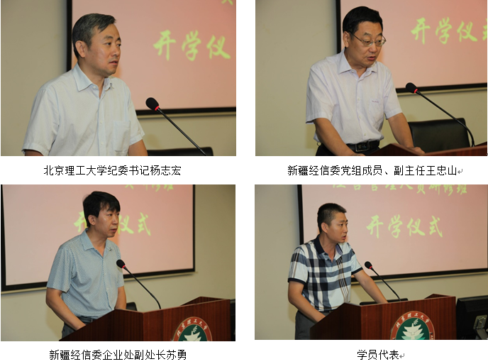 楊志宏代表學校對來自新疆信經(jīng)委的領導、學員們表示了熱烈的歡迎,感謝新疆經(jīng)信委對我校的信任,學校將會用最優(yōu)的服務、最強的師資力量,辦好此次研修班。王忠山也對此次培訓寄予厚望,希望學員們珍惜本次學習機會,在學習中交流提高,實現(xiàn)企業(yè)跨越式成長,為新疆地區(qū)的經(jīng)濟發(fā)展做出更大貢獻。蘇勇宣布了本次研修班的班委名單。新疆北方億星科技有限公司總經(jīng)理張朝明同學代表全體學員發(fā)言,表示會好好把握這次學習機會,認真聽講,吸取知識,提升自身管理能力和水平,不辜負領導的希望。