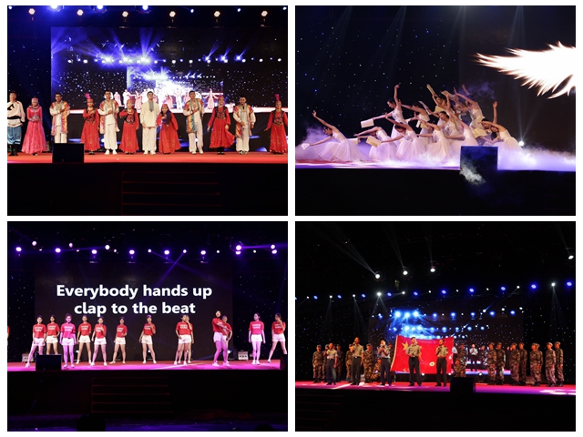 訓練時嚴肅認真、揮汗如雨,舞臺上青春涌動、炫酷靚麗。整場晚會氣勢恢弘、高潮迭起。軍訓旅的指導員和學員們用自編自導的精彩的表演展示軍訓成果,用無限的激情表達對軍訓的難舍情懷和對祖國的良好祝愿。晚會中《歌聲嘹亮》、《我愛你中國》、《開學第一課》、《民族一家親》和《青春的翅膀》等歌舞類節(jié)目為全體觀眾帶來視聽盛宴;《北理工,我向您報告》、《我們的家叫北理工》和《軍訓那些事兒》等語言類節(jié)目精彩紛呈,將晚會推向一個又一個高潮;晚會在視頻《畫說北理》以及全體參演師生演唱的歌曲《相親相愛》中圓滿落下帷幕。