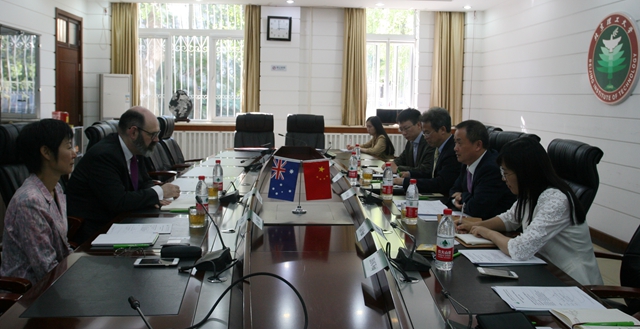 梅宏副校長對Evans副校長一行的來訪表示歡迎,他向對方介紹了我校基本情況、國際化發展和對澳合作情況。Evans副校長感謝了梅校長的熱情接待,并介紹了墨爾本大學的基本情況和國際化戰略。雙方圍繞進一步開展人才培養項目和鼓勵教師科研合作等進行了討論。