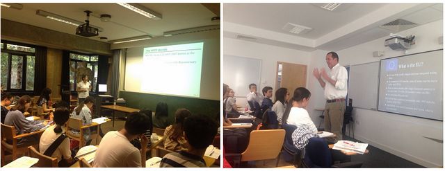 此次暑期項目學習的主要專業內容為《宏觀經濟學》課程,該課程由劍橋大學國王學院的老師Dr.Elisa Fariglia及Dr.Chryssi Giannitsarou分別為同學們講授。其講授內容與國王學院同年級經濟系學生學習的內容相同。英國大學的本科是三年制,而作為世界一流大學的劍橋大學,其課程的內容量、相對難度和考核的嚴格都是眾所周知的。同學們在最初上課時感到有些吃力,或對一些專業名詞、理論基礎不熟悉,或英語聽力有困難。隨后,同學們調整學習方法,利用課余時間提前預習課程,并成立了學習小組,相互交流,互相協作。在學習過程中,老師鼓勵學生根據自己的情況隨時提出問題,并在課堂上和同學們一起討論,及時理清思路,增強學習效果。同學們也紛紛打消了自己在異國學習的緊張感,珍惜短暫而寶貴的機會,積極投身于課堂之中,主動參與課堂互動。除了專業課程以外,暑期項目安排了劍橋大學教授的學術專題講座,包括“英國脫歐”、“人民幣國際化”等諸多有特色的專題。講座上學生們在聆聽教授們智慧演講的同時,領悟到了學術研究的方法和學術的真正魅力。