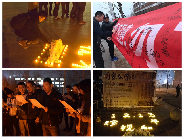 12月12日,由校共產主義學習實踐總會主辦“燃燭·祭——紀念國家公祭日”外場活動在良鄉校區順利舉辦,數百名同學參與了此次活動。“國家公祭日,是一個國家為紀念曾經發生過的重大民族災難而設立的國家紀念活動,中華人民共和國第十二屆全國人大常委會第七次會議決定,將12月13日確定為南京大屠殺死難者國家公祭日。”在外場宣傳活動中,共學會成員為同學們詳細講解了國家公祭日的歷史淵源,來往同學紛紛停下腳步,在“緬懷同胞,勿忘國恥,面向未來,珍視和平”的紀念橫幅上簽上鄭重簽名,寄托自己對三十萬死難同胞的哀思。