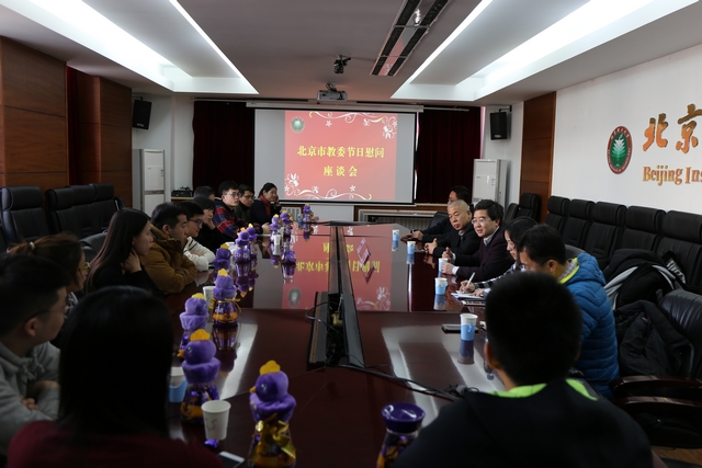 1月23日上午,北京市教育委員會副主任李奕一行蒞臨我校,代表北京市教委、教工委慰問寒假留校學生并進行座談,副校長李和章、學生工作處處長郭彥懿、副處長徐貴寶參加座談。