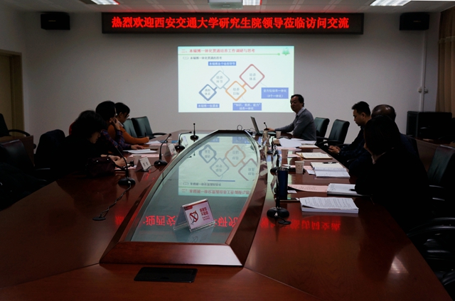 西交大龍建綱介紹了此次來訪的目的和調(diào)研內(nèi)容,我校王軍政簡要介紹了研究生院基本情況,重點介紹了我校本碩博一體化貫通培養(yǎng)方面的工作。