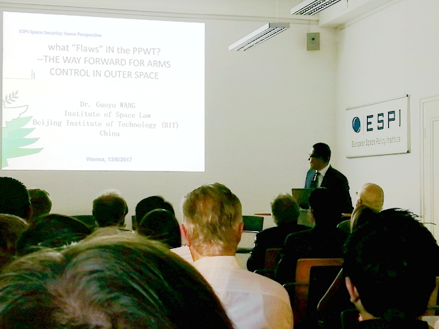 2017年6月4日至17日,受國家外交部條法司邀請,作為中國代表團成員,北理工法學院王國語副教授參加了在奧地利維也納舉行的聯合國外空委第60屆會議。期間,受國防科工局系統一司委派,王國語全程參加了聯合國外空活動長期可持續工作組的屆間會及大會邊會談判,是中方談判專家組唯一來自高校的專家,主要承擔一線談判任務。
