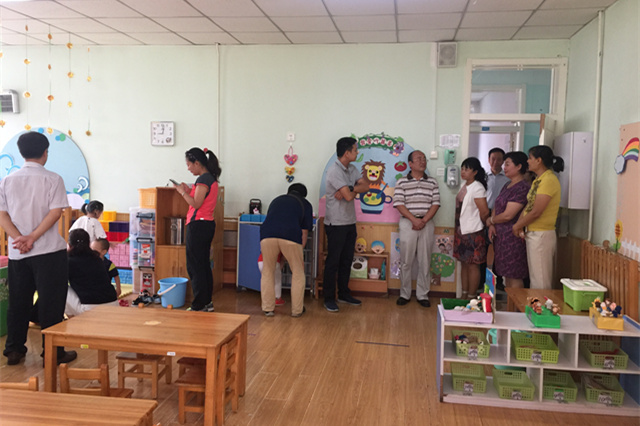 后勤集團領導也非常關注幼兒園開學情況,上午集團領導李晉平、姜金鳳、王文煥、孫金鋒、王海濤一行五人來到幼兒園,看望小朋友們,對辛勤工作的教師們表示真誠問候。 老師們組織孩子和家長來到戶外,體驗幼兒園精彩好玩的戶外游戲,小四班王老師帶著孩子們用簡單的呼啦圈玩起了跳圈游戲,小六班邢老師讓孩子們過足了滑滑梯的癮,小三班李老師和孩子手拉手圍成圓圈做起了早操,小七班后院的扭扭車更是讓孩子們愛不釋手……家長們感嘆幼兒園豐富的玩具和游戲,更被老師們專業的幼教工作所折服,有的家長激動地說:“幼兒園的老師們太專業了,她,他們都是非常優秀的老師!”。