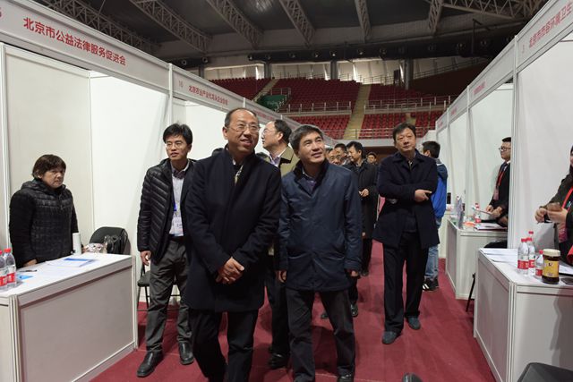 北京社會(huì)工作委員會(huì)委員、北京市社會(huì)建設(shè)工作辦公室副主任盧建在招生就業(yè)工作處處長李振鍵的陪同下視察招聘會(huì)現(xiàn)場(chǎng)。