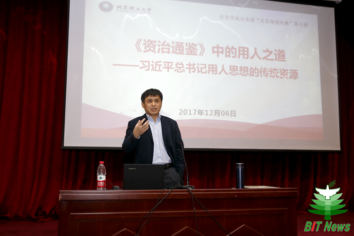 2017年12月6日,由北京市教工委主辦、北京理工大學馬克思主義學院承辦的“名家領讀經典”北京市級高校思想政治理論課第七講在我校中關村校區中教報告廳舉行。中國人民大學歷史學院黨委書記劉后濱教授受邀來我校授課,課程的主題是《<資治通鑒>中的用人之道——探尋習近平總書記選人用人思想的傳統資源》,課程由北京理工大學馬克思主義學院副院長郭麗萍教授主持。來自中國人民大學、北京航空航天大學、北京化工大學、北京中醫藥大學、北京信息科技大學、北京聯合大學等多所高校的學生及北京理工大學各院系師生代表共計500余人參加了此次課程。