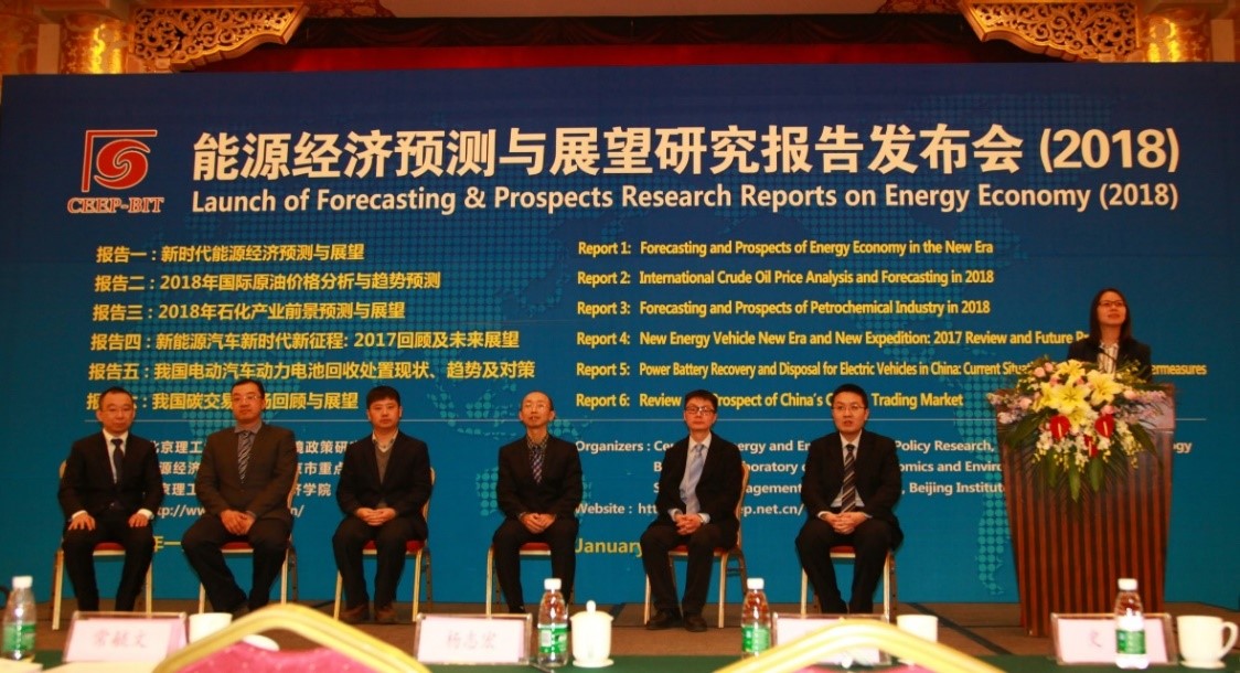 1月13日,北京理工大學能源與環境政策研究中心在北京舉行2018年度“能源經濟預測與展望研究報告發布會”,對外發布《新時代能源經濟預測與展望》《2018年國際原油價格分析與趨勢預測》《2018年石化產業前景預測與展望》《新能源汽車新時代新征程: 2017回顧及未來展望》《我國電動汽車動力電池回收處置現狀、趨勢及對策》《我國碳交易市場回顧與展望》六份研究報告。該系列報告是由國家“萬人計劃”入選者魏一鳴教授帶領的能源與環境政策研究團隊,根據國內外能源經濟與氣候政策形勢,選擇特定主題開展的針對性研究而形成的研究成果。自2011年以來,該團隊已經第8次發布年度能源經濟預測與展望研究報告,引起了各界廣泛關注和影響。
