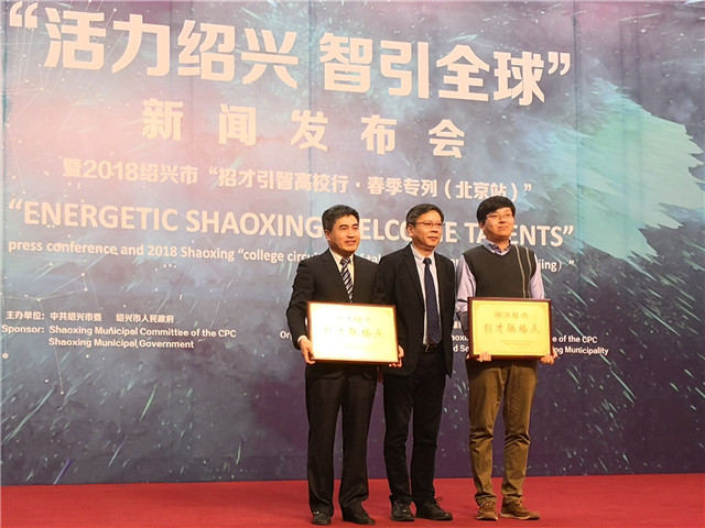 紹興市還向學校授予了“浙江紹興引才聯絡點”牌匾,招生就業工作處處長李振鍵接受了頒牌。