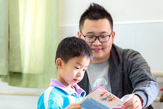 一年級的小朋友在識文斷字上尚有不足,即便面對彩繪版的《未成年人保護法》讀起來也略顯生澀,為此,志愿者們協調分工,力爭做到1對1或者1對3的合理分配,逐字逐句的教小朋友認字、斷句、讀法律條文,學習法條內容,并且通過解讀圖片講解自我保護的方法和相關知識。