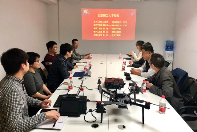 木牛領航CTO冀連營校友向學院調研小組介紹了公司的基本情況及發展歷程,表示母校的培養對于公司創始人的技術積累起到了關鍵作用,北京木牛領航科技有限公司團隊兩位創始人均博士畢業于北京理工大學信息與電子學院雷達技術所,其科研素養、工程經驗、創新精神都與在校期間學校培養密不可分,母校的科研資源、校友關懷對于公司的創立與發展也提供了許多幫助,日后將會從各個方面加強校企合作、校友聯絡。薛正輝向校友們介紹了學院近年來產學研發展情況及校友工作情況,回顧了北京理工大學信息與電子學院的輝煌成就,包括我國第一套電視發射接收設備、第一部低空測高雷達、空間交會對接雷達、第一部星載SAR實時信號處理系統等。他還介紹了包括六位院士在內的杰出校友,他代表學院表達了十分歡迎校友們與學院進行深度合作與交流,雙方系統性進行面對面的交流與座談等愿望。徐建表示在學生科技創新方面,十分歡迎校友提供一些展示度高的平臺,供學生鍛煉與學習,日后也希望校友參與進學院學生人才培養的工作中來。何遵文就科研合作對校友們提出了自己的建議,建議后續在產品推廣方面廣泛運用校友資源達到雙贏。冀連營十分感謝學院領導的關心和支持,表示日后會竭盡全力,參與到學院產學研合作與學生人才培養的工作中去,例如舉辦無人機開發競賽,使學生學有所用,希望通過大家共同努力進一步加強校友與學院之間的交流與合作。