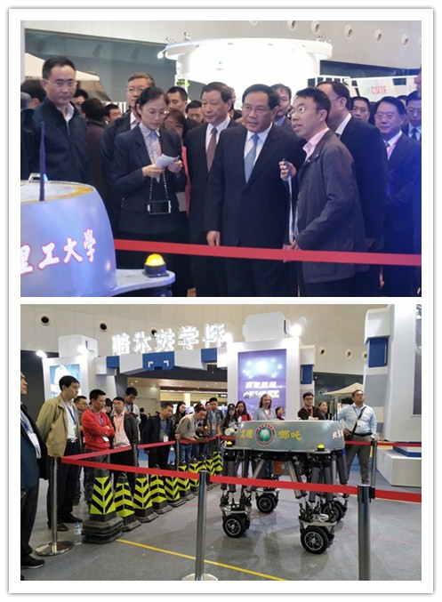 “北理哪吒”是由北理工自動化學院教授王軍政帶領的運動驅動與控制研究團隊自主設計研制的具有輪式、足式和輪足復合運動功能的電動并聯機器人,曾獲得全國第15屆大學生科技創新“挑戰杯”競賽一等獎。“北理哪吒”受到了參展領導、專家和學者的廣泛關注和好評,現場展示環節更是吸引了眾多參觀者和媒體的目光,成為了整個展會的“亮點”。