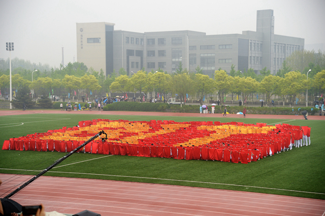 來自19個(gè)學(xué)院的800名學(xué)生帶來的大型團(tuán)體操表演,整齊劃一,意氣風(fēng)發(fā),表演以旗幟為創(chuàng)作元素,紅旗滾滾,氣勢(shì)磅礴,同學(xué)們以精彩的表演點(diǎn)燃全場(chǎng)熱情。結(jié)束之際,學(xué)生們揮動(dòng)手中的旗幟,依次擺出“BIT 強(qiáng)國夢(mèng) 2018 ”字樣,表達(dá)出北理工莘莘學(xué)子對(duì)國家、學(xué)校的熱愛與希望,為實(shí)現(xiàn)民族夢(mèng)、強(qiáng)國夢(mèng)、中國夢(mèng)而奮斗的信心與決心!
